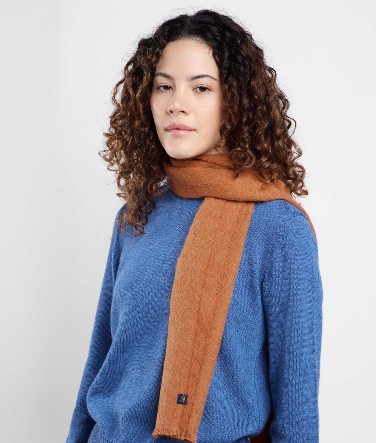 Chalina versátil, elegante y atemporal. El acabado brushed le da una textura extremadamente suave al tacto y un volumen sutil que eleva cualquier look. Elaborada en 100% baby alpaca, esta pieza combina abrigo, ligereza y sofisticación para acompañarte durante todo el año.